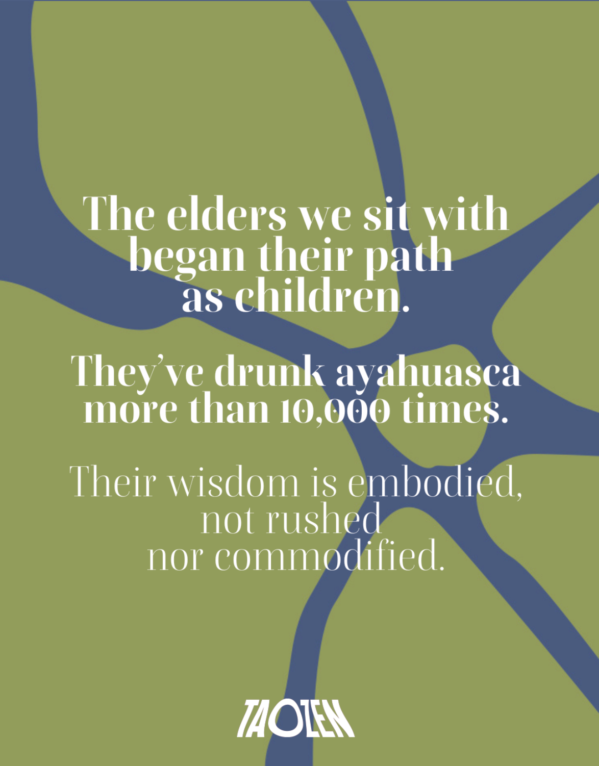 Our own guidelines are constantly evolving, but for now, at Taozen retreats, we're currently only collaborating with indigenous Amazonian shamans over 50 years old, from long-standing lineages.
